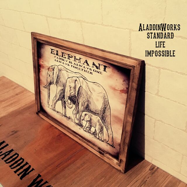 ポスター ELEPHANT 象 家族 ネイティブ ヴィンテージ ジャンク 男前 インテリア グランジ AladdinWorks